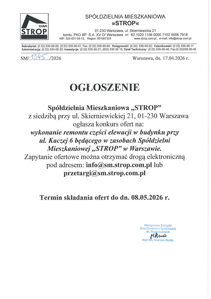 w związku z otrzymywanymi od Państwa informacjami dotyczącymi trudności w odnalezieniu wiadomości e-mail wysyłanych przez Spółdzielnię, zwracamy się z uprzejmą prośbą o sprawdzenie w swoich skrzynkach pocztowych folderów takich jak „Spam” lub „Oferty”.